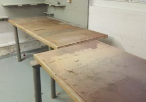 Nun stand ich als bei über 60% meiner Zielvorgabe. Also eigentlich 100% doch die Werkbank ist ja mit 3.70 Meter immer noch zu lang. Nach einer ersten Besichtigung war klar, dieses Problem lässt sich lösen. So erlaubte mir der Verkäufer, dass ich selbstverständlich den Tisch direkt in seinem Keller verkleinern könne, wenn mir das helfe.